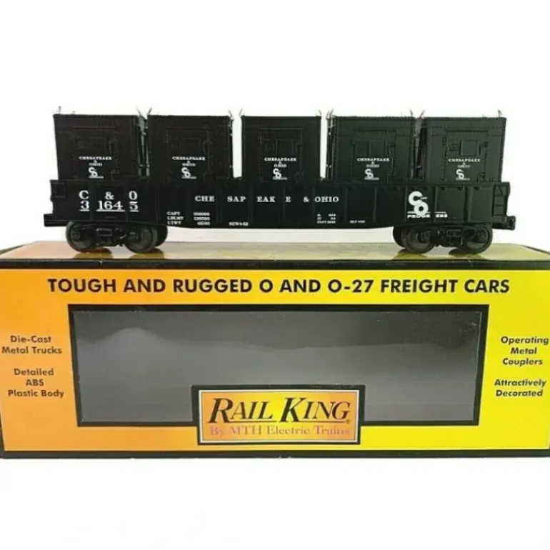 Here is an MTH 30-72058 Chesapeake & Ohio Gondola Car w/LCL Containers. It features an intricately detailed and durable ABS body, die-cast trucks, metal wheels and axles, and operating die-cast knuckle couplers.