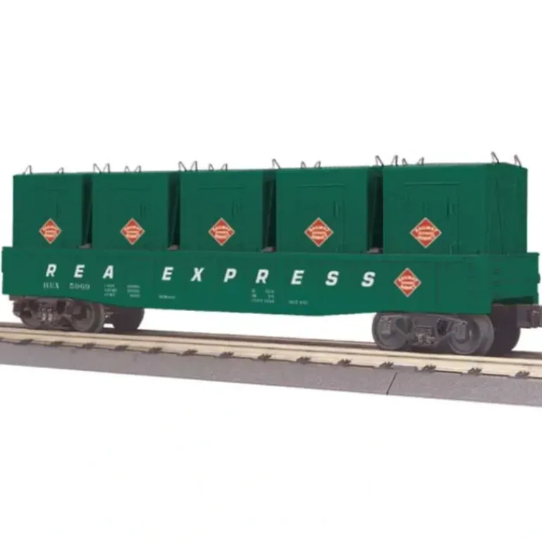 Here is an MTH 30-72059 Railway Express Agency Gondola Car w/LCL Containers. It features an intricately detailed and durable ABS body, die-cast trucks, metal wheels, and operating die-cast knuckle couplers.