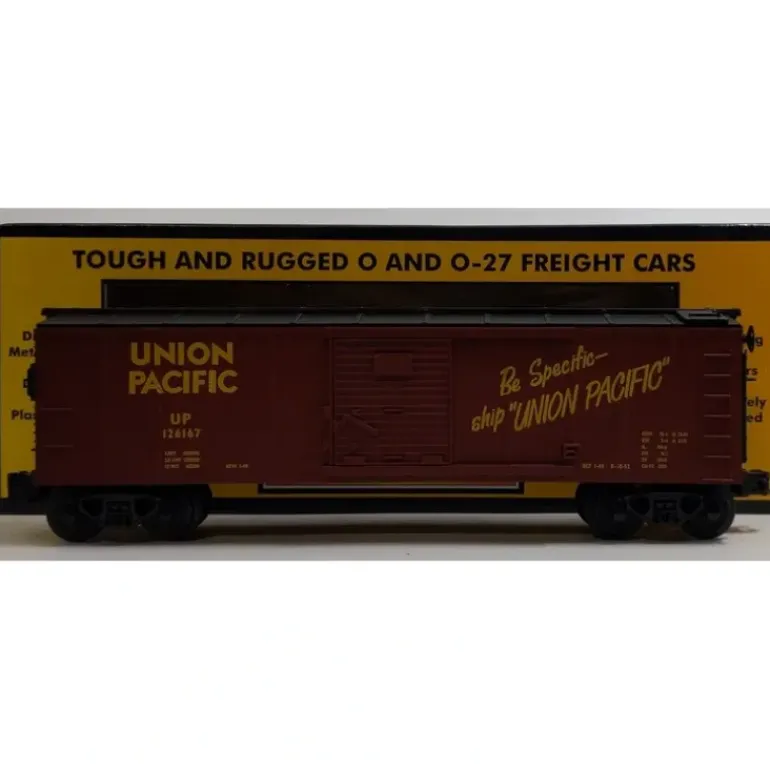 Here is a great MTH 30-7412 O Gauge Union Pacific Boxcar #126167. This car features die cast trucks and operating couplers. It is from the RailKing line and will run on O-31 curves.