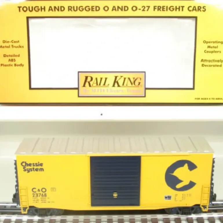 This is an MTH 30-74477 Chessie 40 Foot Hight Cube Boxcar. High quality, traditionally sized RailKing Freight Cars provide detailed bodies and colorful paint schemes for the O Gauge railroader. MTH makes an enormous variety of RailKing Freight Cars, including many different car types and roadnames. No matter what era or part of the country you are modeling, RailKing is sure to have something for you. This car features die-cast metal sprung trucks, die-cast metal operating knuckle couplers, metal wheels and axles.