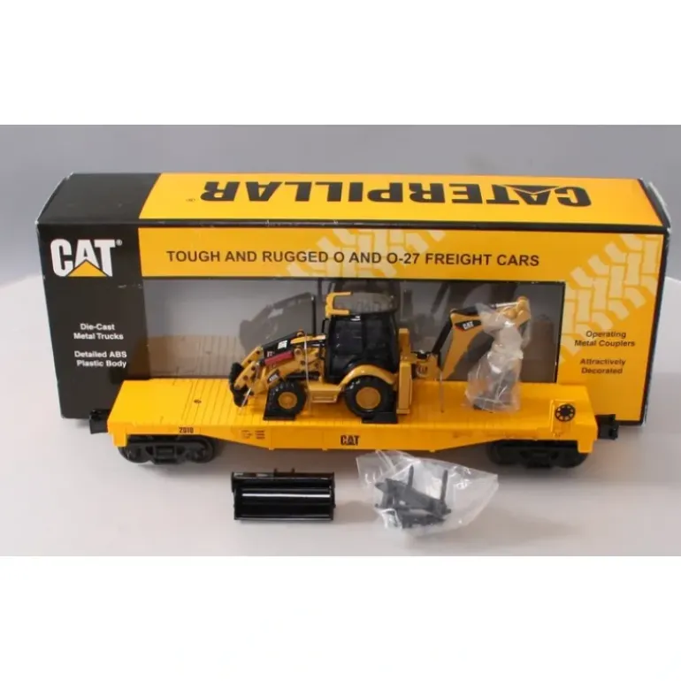 This is a MTH 30-76349 O Gauge Caterpillar Flatcar w/ CAT432E Backhoe #2010. High quality, traditionally sized RailKing Freight Cars provide detailed bodies and colorful paint schemes for the O Gauge railroader. MTH makes an enormous variety of RailKing Freight Cars, including many different car types and roadnames. No matter what era or part of the country you are modeling, RailKing is sure to have something for you. c 2008 Caterpillar, CAT, CATERPILLAR, their respective logos, Caterpillar Yellow and the POWER EDGE trade dress, as well as corporate and product identity used herein, are trademarks of Caterpillar and may not be used without permission. Features include Intricately Detailed Durable ABS Body, Metal Wheels and Axles, Die-Cast 4-Wheel Trucks, Operating Die-Cast Metal Couplers, Colorful, Attractive Paint Schemes, Decorative Brake Wheels, Fast-Angle Wheel Sets, Needle-Point Axles, (2) Die-Cast CAT 906 Compact Wheel Loaders, Unit Measures:11 5/8 x 2 1/4 x 3 3/4, Operates On O-27 Curves.