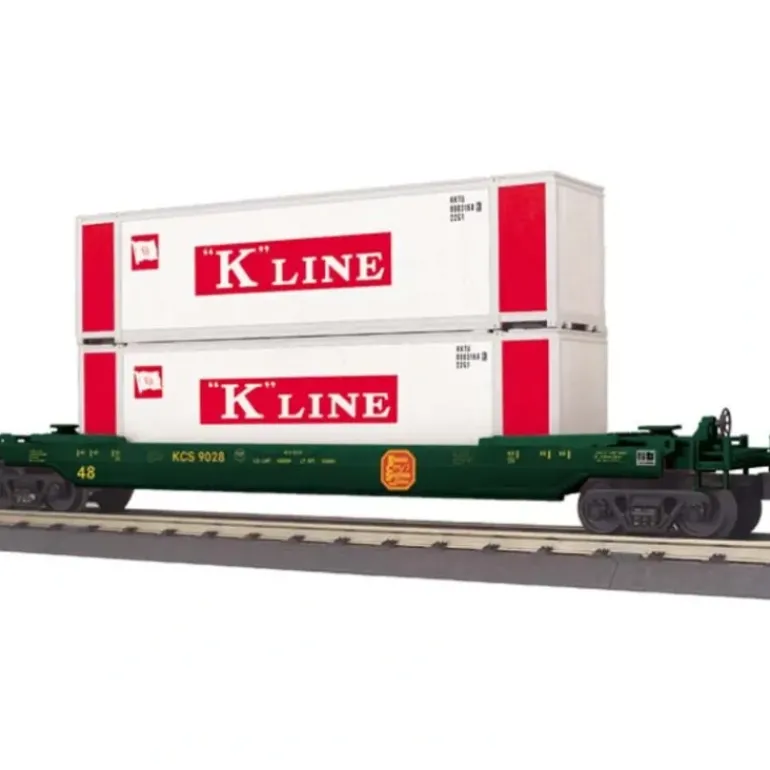 Here is a MTH 30-76371 Kansas City Southern Husky Stack Car. This car features die-cast metal sprung trucks, operating knuckle couplers, metal wheels and axles.