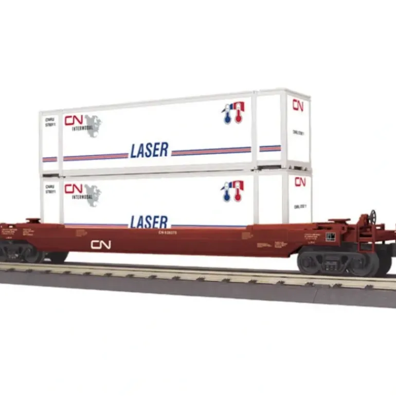 Husky Stack Car – Canadian National. Intricately Detailed Durable ABS Body. Metal Wheels and Axles. Die-Cast 4-Wheel Trucks. Operating Die-Cast Metal Couplers. Colorful, Attractive Paint Schemes. Decorative Brake Wheels. Separate Metal Handrails. Fast-Angle Wheel Sets. Needle-Point Axles. Unit Measures:14 3/4 x 2 5/16 x 5. Operates On O-31 Curves.