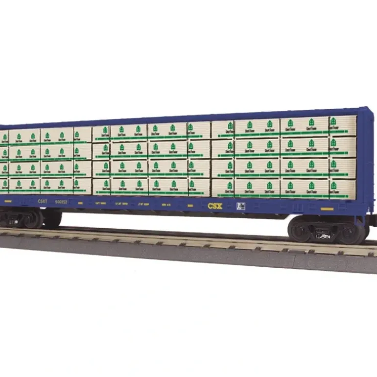 Here is a MTH 30-76418 O Gauge CSX Center I-Beam Flatcar #600852. This freight car features Intricately Detailed Durable ABS Body, Metal Wheels and Axles, Die-Cast 4-Wheel Trucks, Operating Die-Cast Metal Couplers, Colorful, Attractive Paint Schemes, Decorative Brake Wheels, Fast-Angle Wheel Sets, Needle-Point Axles, Simulated Wood Load, Unit Measures:15″ x 2 3/8″ x 3 15/16″, Operates On O-31 Curves.