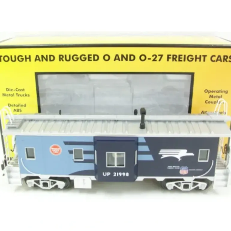 Here is an MTH 30-77153 Missouri Pacific Bay Window Caboose. This car features die-cast metal sprung trucks, die-cast metal operating knuckle couplers, and metal wheels and axles.