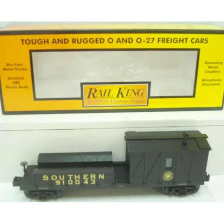 This is an MTH 30-79246 Southern Crane Tender Car. Features include: die-cast metal trucks, detailed ABS plastic body, operating metal couplers, attractive decoration, and metal wheels.