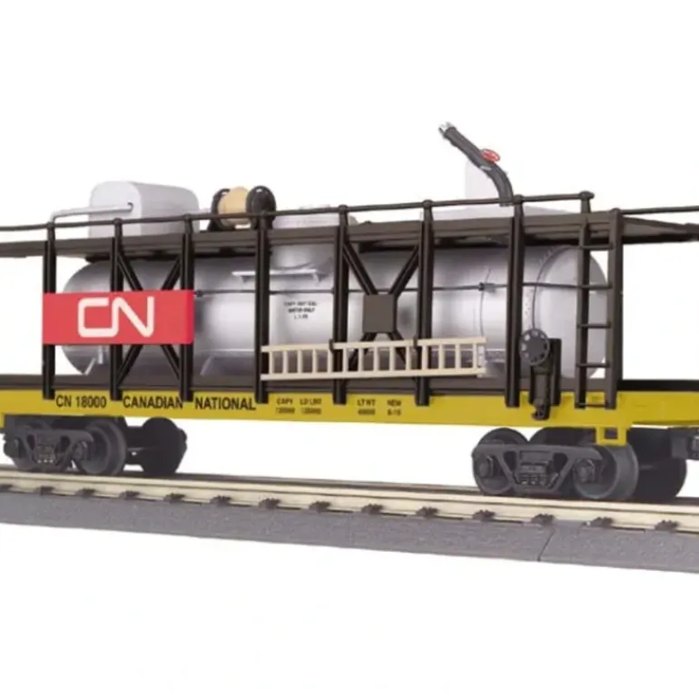 Here is an MTH 30-79274 Canadian National Fire Car. It features an intricately detailed and durable ABS body, die-cast trucks, metal wheels, and operating die-cast knuckle couplers.