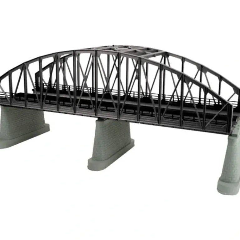 Here is an MTH 40-1111 O 2-Track Black Steel Arch Bridge. Features: Intricately Detailed ABS Construction, Fully Assembled, Fully Painted, Operating Blinking Light, Compatible With All ‘O’ Track Systems, Unit Measures:32 x 10 15/16 x 14