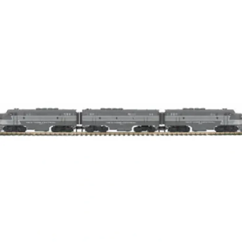 This is an MTH 70-2008-1 New York Central F-3 AA Diesel Set – With Proto-Sound 2.0, A Units – 3502 & 3503. World War II had called for locomotive manufacturers to adhere to production guidelines as set by the War Production Board. With the war’s end in 1945, EMD, like other major competitors, worked hard to meet industry demand after four years of restricted supply. In the freight cab market, EMD released their F-series. The F-3 headlined the series, debuting in the summer of 1945, a few months before the official end of the war. The F-3 emerged with a new generator that supplied both direct and alternating current, an important upgrade for EMD’s initial F-unit design. Because of the addition of the dual generator, AC-powered fans and blowers could be operated electrically, boosting the locomotives’ ability to stay in top form. The 1,500-h.p. rated F-3, with its bulldog nose and dual capabilities set a standard in railroading. In test runs, No. 291, a demonstrator unit, logged over 125,000 miles in sixteen months pulling freight and passenger loads. Railroads were impressed with the tests and hundreds of advanced orders for the F-3s poured in. EMD and One Gauge fans will no doubt want to order this stellar replica of the F-3 perfectly proportioned in 1/32 scale. The RailKing One-Gauge F-3 represents the bulldog tenacity of the prototype with its inclusion of the awesome sounds and features of Proto-Sound 2.0. Did You Know? F-3s assigned for freight duty utilized a “wedge pilot rather than the smooth pilot found on passenger service assignments. Features include Detailed Polycarbonate Bodies, Authentic Paint Scheme, Metal Wheels and Axles, (2) Operating Knuckle Couplers, (2) Uninstalled Hook & Loop Couplers, Constant Voltage Directionally Controlled Headlights, (2) Precision Flywheel Equipped Motor, Engineer and Fireman Figures, Detailed Cab Interiors, Metal Handrails and Decorative Horn, Opening Cab Doors, Operating Cab Interior Lighting, Indoor/Outdoor Use, Locomotive Speed Control, (2) Operating Smoke Units, Proto-Sound 2.0 With The Digital Command System Featuring: Passenger Station Proto-Effects, Unit Measures:39″ x 3 3/4″ x 5 1/4”, and it Operates On R2 Curves.
