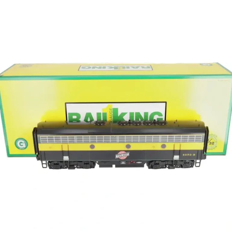 Here is an MTH 70-2041-3 Chicago & North Western 1-Gauge F-7 B-Unit Dummy Diesel Locomotive. Features include: Detailed Truck Sides and Fuel Tank, Colorful Paint Scheme, Metal Chassis, Metal Body Side Grilles, Intricately Detailed Polycarbonate Body, Spinning Roof Fans, Metal Wheels and Axles, (2) Couplers, Unit Measures:19 1/2 x 3 3/4 x 5 1/4, Operates On R2 Curves.