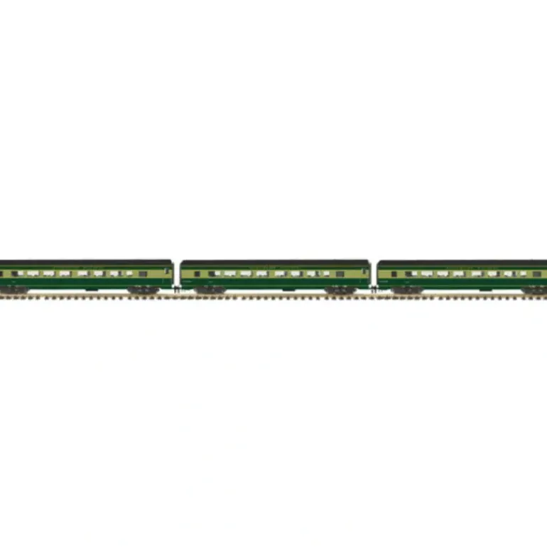 This is an MTH 70-65018 Northern Pacific 3-Car Passenger Car Set. Features include Durable Intricately Detailed Polycarbonate Bodies, Detailed, Sprung 4-Wheel Trucks, Choice Of Knuckle or Hook & Loop Couplers, Colorful, Attractive Weatherproof Paint, End-of-Car Diaphragms, Separate Metal Handrails, Metal Wheels and Axles, Opening Car Doors, Detailed Car Interiors, Operating Overhead Interior Lighting, 1:32 Scale Height and Width, Detailed Car Undercarriage, 3-Car Sets Feature (3) Coaches, Unit Measures:85 1/2 x 3 3/4 x 5, and Operates On R1 Curves.