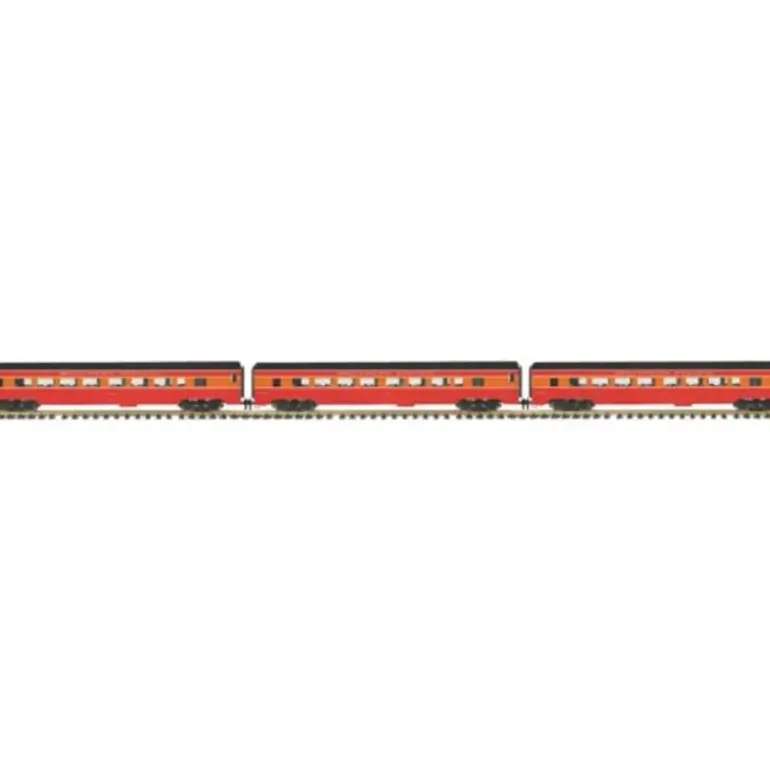 This is an MTH 70-65020 Southern Pacific 3-Car Passenger Car Set. Features include Durable Intricately Detailed Polycarbonate Bodies, Detailed, Sprung 4-Wheel Trucks, Choice Of Knuckle or Hook & Loop Couplers, Colorful, Attractive Weatherproof Paint, End-of-Car Diaphragms, Separate Metal Handrails, Metal Wheels and Axles, Opening Car Doors, Detailed Car Interiors, Operating Overhead Interior Lighting, 1:32 Scale Height and Width, Detailed Car Undercarriage, 3-Car Sets Feature (3) Coaches, Unit Measures:85 1/2 x 3 3/4 x 5, and Operates On R1 Curves.