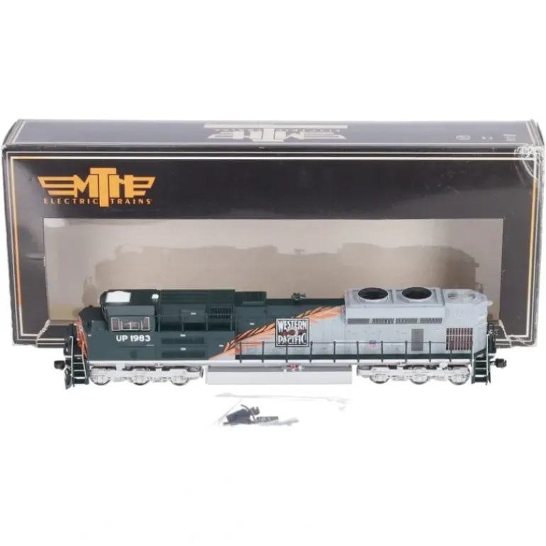 Here is a MTH 80-2008-1 Western Pacific HO Scale SD70ACe Diesel Engine w/PS 3.0 #UP1983. Features include Intricately Detailed ABS Body, Authentic Paint Scheme & Cab Numbers, Die-Cast Truck Sides, Pilots and Fuel Tank, Metal Chassis, Metal Handrails, (2) Cab Figures, Directionally Controlled Headlights, RP-25 Metal Wheels Mounted On Metal Axles, Powerful 5-Pole Precision Flywheel Equipped Motor, Locomotive Speed Control in Scale MPH Increments, Lighted Cab Interior, Illuminated Number Boards, Lighted Marker Lights, Operating Ditch Lights, (2) Scale Kadee Compatible Remotely Controlled Proto-Couplers, On-Board DCC Receiver, and it Operates On Code 70, 83, & 100 Rail Curves. Proto-Sound 3.0 equipped locomotives can be controlled in command mode with any DCC compliant command control system.