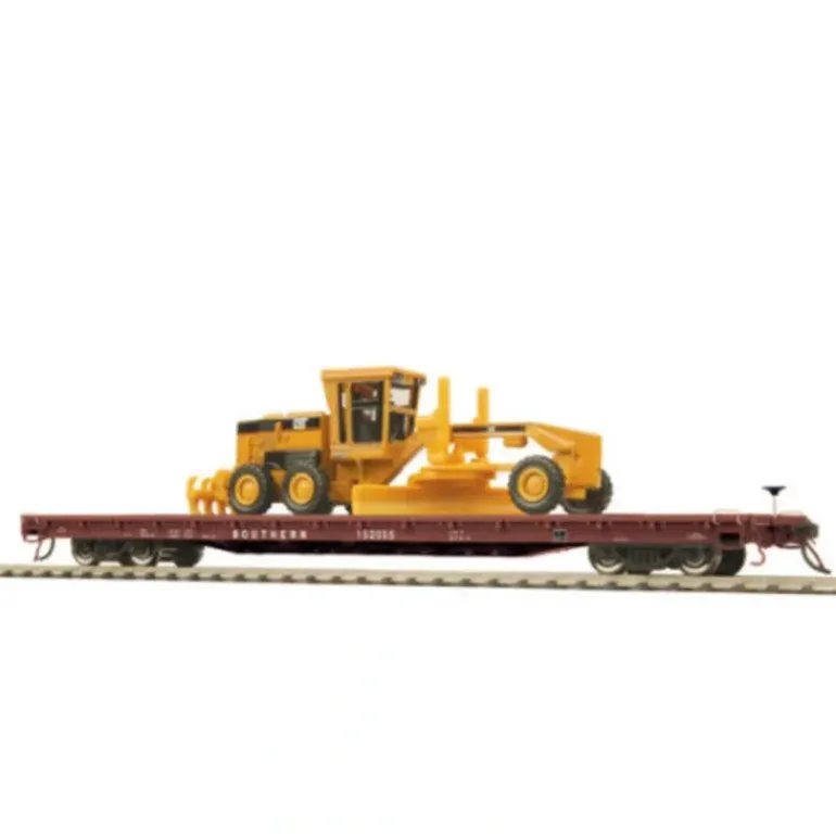 Here is a MTH 80-98022 Southern 60′ Wood Deck Flat Car w/163H Motor Grader. Features include: Intricately Detailed Durable ABS Body Metal Wheels and Axles Operating Roller Bearings Decorative Brake Wheels Separate Metal Handrails 1:87 Scale Dimensions Simulated Wood Decking Kadee Compatible Couplers Detailed Undercarriage Fully Sprung Die-Cast 4-Wheel Metal Trucks