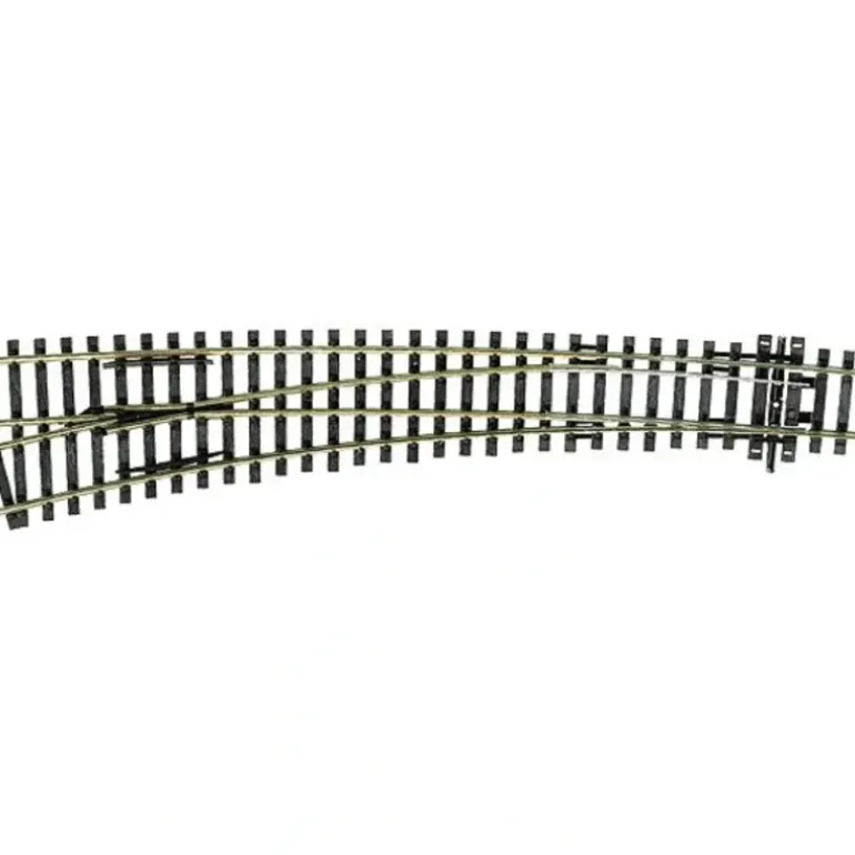This is a Peco SL-87 HO/OO Code 100 60″ Large Radius Left Hand Switch Turnout Insulfrog.