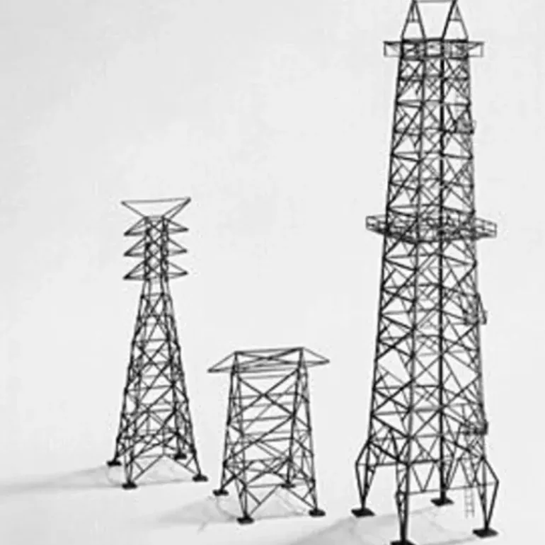 This is a Plastruct 1005 HO Scale 3-7/8 x 3-7/8 x 16-3/4 Electric Towers & Oil Well Kit. Your modern day countryside layout wont be complete without Electrical Towers. Add life-like realism to your layout with this two-part Kit. Construct these towers in the same manner as your local power company and place them throughout the countryside. Or build yourself an oil drilling rig to supply your refinery. In either case, these graceful structures will add beauty and character to your layout.