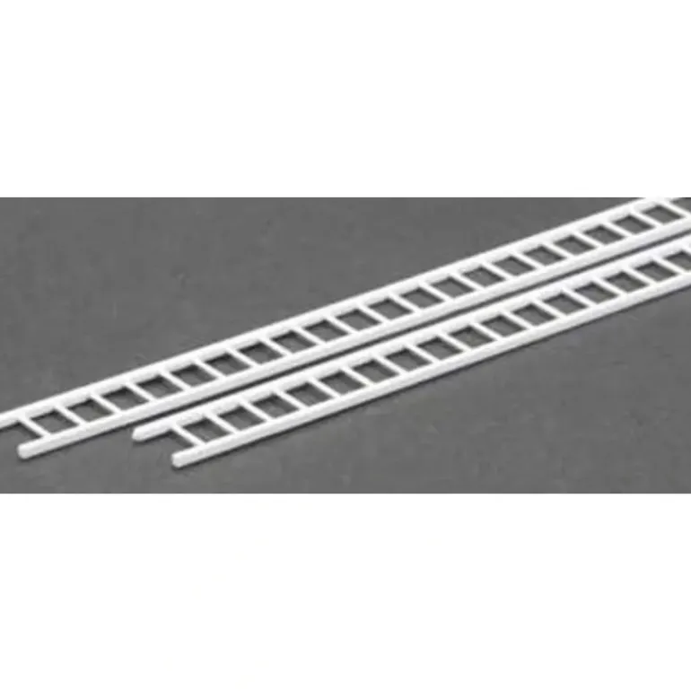 This is a Plastruct 90673 O Scale 13/32 x 15 x 1/4 Styrene Plastic Straight Ladders (Pack of 2). Use as straight ladders commonly found in numerous industrial, commercial, and residential applications. Note, in most industrial applications using a fixed ladder, a cage is also desirable. See CL Safety Cage & Ladder Sets. Precision Injection Molded in White Styrene Plastic. Ideal for museum quality and smaller scale model construction where assembly speed, profile accuracy and cost are the determining factors.