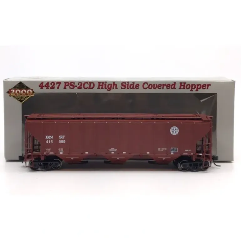 Here is a Proto 2000 21529 HO Atchison Topeka Santa Fe PS-2CD Covered Hopper #415999. This car features plastic construction, plastic trucks, metal wheels and axles, and knuckle couplers.
