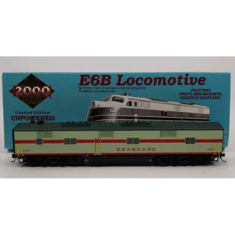 Here is a Proto 2000 23215 HO Seaboard E6B Diesel Locomotive #3103. This engine is not powered and features plastic trucks, operating knuckle couplers, metal wheels and axles.