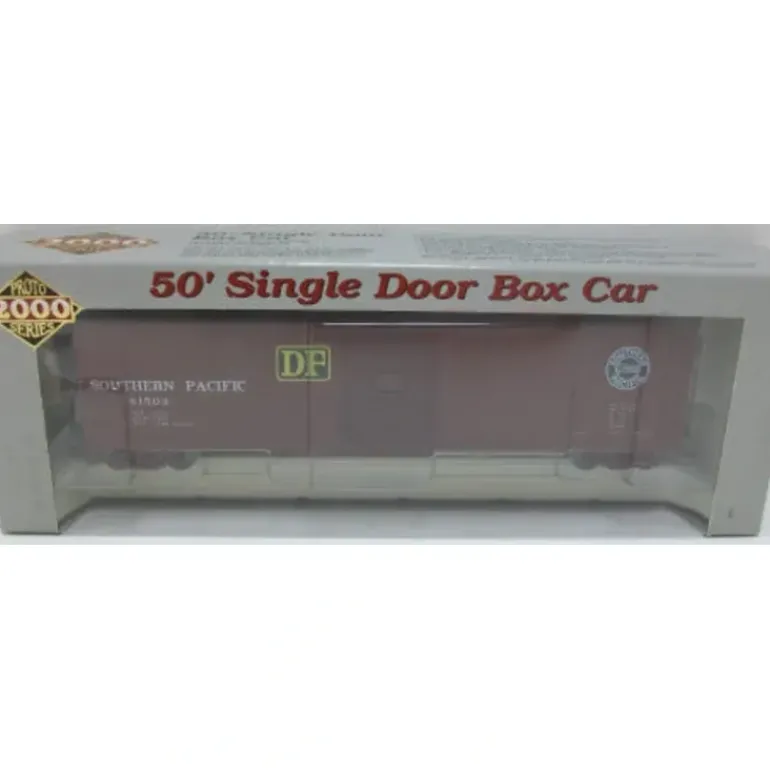 Here is a Proto 2000 23356 HO Southern Pacific 50′ Single Door Boxcar #81503. This car features plastic trucks, knuckle couplers, and metal wheels.