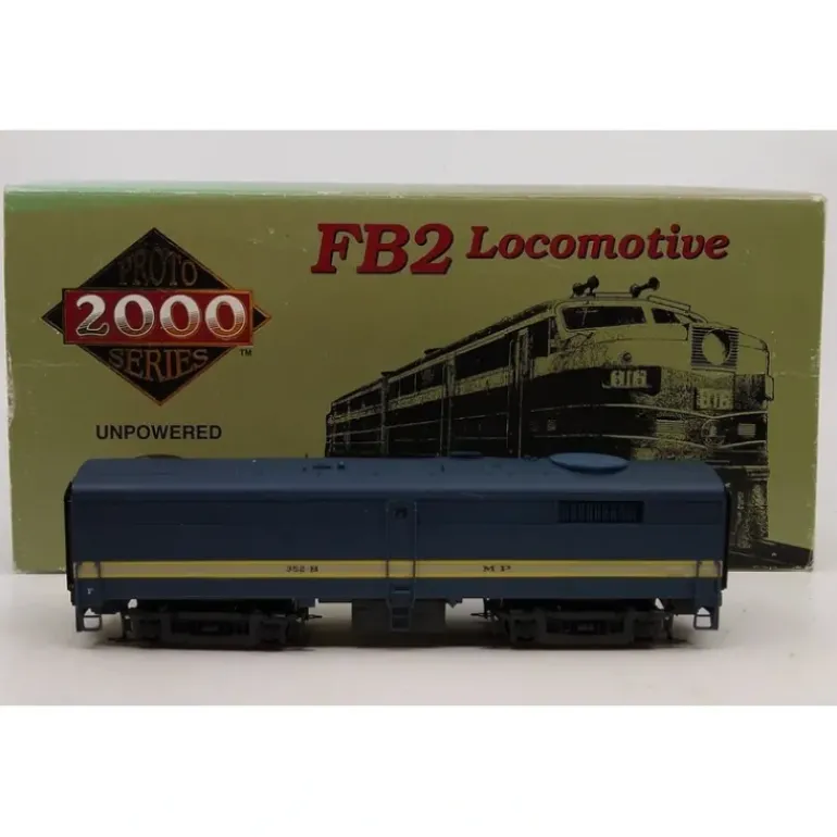 This is a Proto 2000 8370 HO Missouri Pacific FB2 Unpowered FB2 Diesel Locomotive #352B. This car features plastic trucks, operating knuckle couplers, metal wheels and axles.