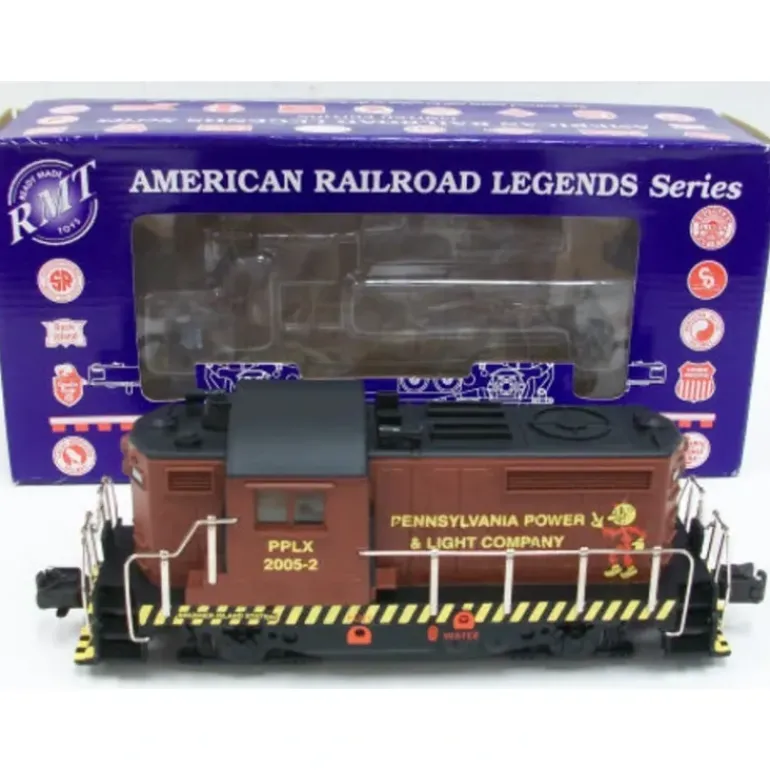 This is a RMT 4762 Pennsylvania Power & Light Brunner Island BEEP Powered Diesel Loco #2. RMT Beeps are very popular amongst model train lovers. The BEEP is modeled after GEEPs (GP-9s),and condensed into a smaller baby-sized version of your traditional O gauge diesels. Dont let its size fool you, this engine has the pulling capacity of your standard O gauge engines. Features include dual can motors, an electronic 3-position forward-neutral-reverse unit, directional lighting, dual roller power pickups, operating metal knuckle couplers, metal railings, decorative horns and metal wheels. It is compatible with all Lionel, K-line, MTH, Atlas, Williams and Weaver electric trains and is perfect for use on all O and O-27 3-Rail model train layouts . It is 9.5 Inches long and operates on minimum O-27 curves.