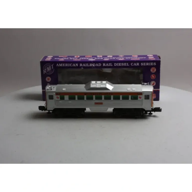 This is a RMT 5162 Milwaukee Rd. BUDDY Powered Diesel RDC #264. RMT BUDDY’s are smaller-sized RDC commuter cars and are compatible with Lionel, K-line, MTH, Atlas, Williams and Weaver electric trains, this BUDDY Rail Diesel Car/RDC is 13 inches long and perfect for use on all O and O-27 3-Rail model train layouts. It will operate on 0-27 radius curves. The BUDDY features 2 motors, electronic reverse F-N-R, front/rear directional headlights/marker lights, flashing roof beacon, operating knuckle couplers, cab detail with seated engineer figure, tinted windows, interior lights, metal hand rails – chains and metal chassis with multi-wheel electrical pickup. All BUDDY’s are Powered unit only, there were no non-powered units made.