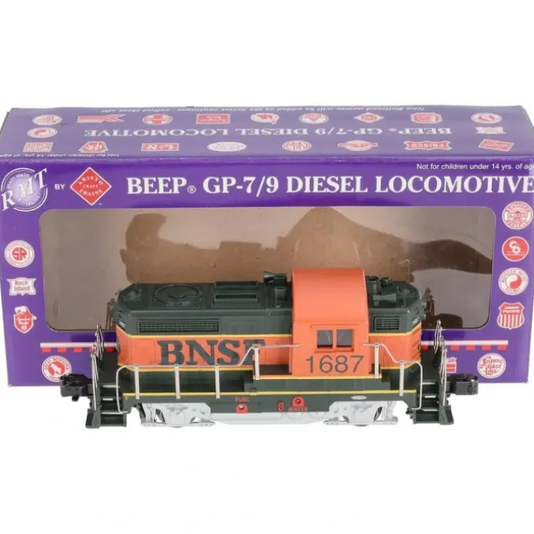 Here is an RMT 924284 O Burlington Northern Santa Fe BEEP GP-7 Diesel Locomotive #1687. This item features plastic body construction, operating knuckle couplers, lighting, and metal wheels and axles. Please see my pictures for additional features.