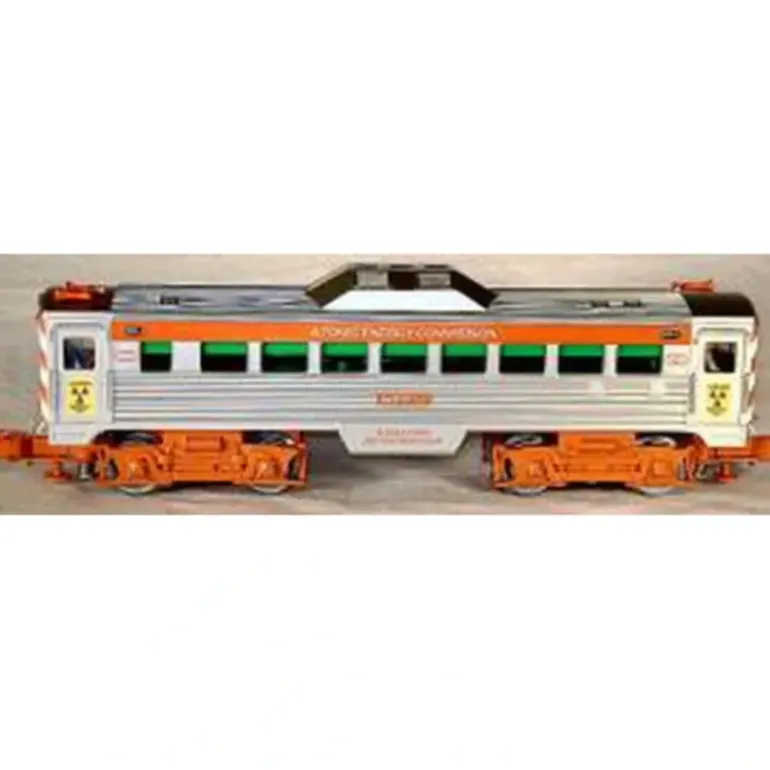 During the 1950’s – 1960’s era, the AEC was America’s atomic power research and development center. Atomic power was projected for many railroad applications from powering yard trackage switch lamps to locomotives. RMT-92509 AEC #RDC-1 features the ‘atom’ logo and appropriate AEC lettering that could have been used for a RADIATION DETECTION CAR.