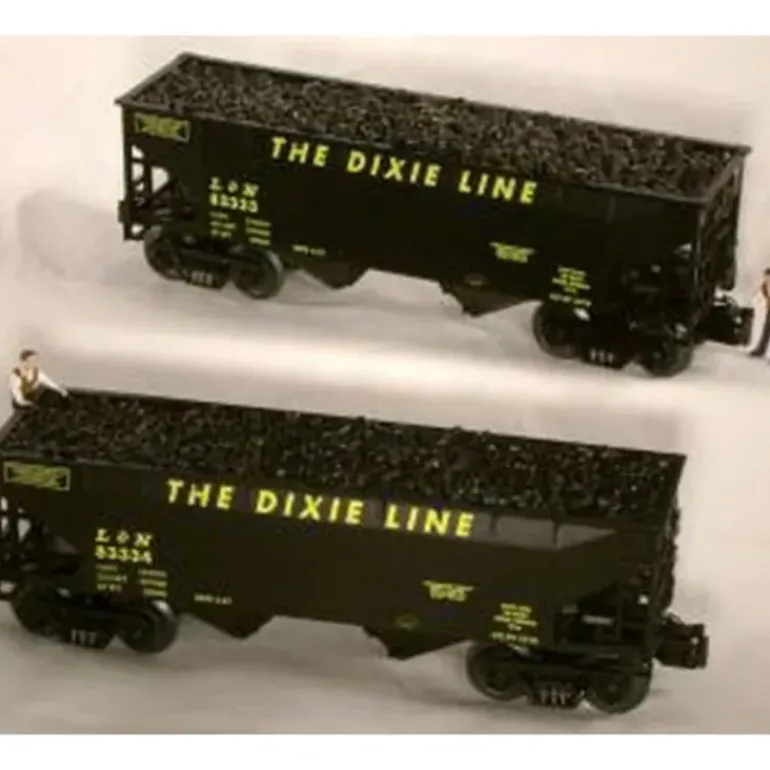 Here is a RMT 96264 O Louisville & Nashville 2-Bay Coal Hopper Set. Each car features die-cast metal sprung trucks, metal wheels and axles, and operating knuckle couplers.
