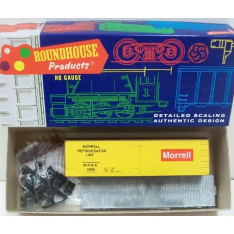 Here is a Roundhouse 3183 Morrell no. 2509 36 ft. meat reefer kit. Roundhouse ready-to-run models are precision engineered, easy to assemble, and fun to run. Features include plastic pieces and instructions for easy construction, fixed knuckle couplers, plastic wheels and metal axles.