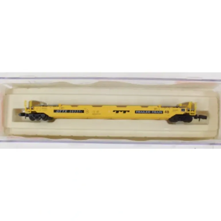 Here is a Roundhouse 8471 N Scale Trailer Train Husky Stack. This car features knuckle couplers and a plastic body construction.