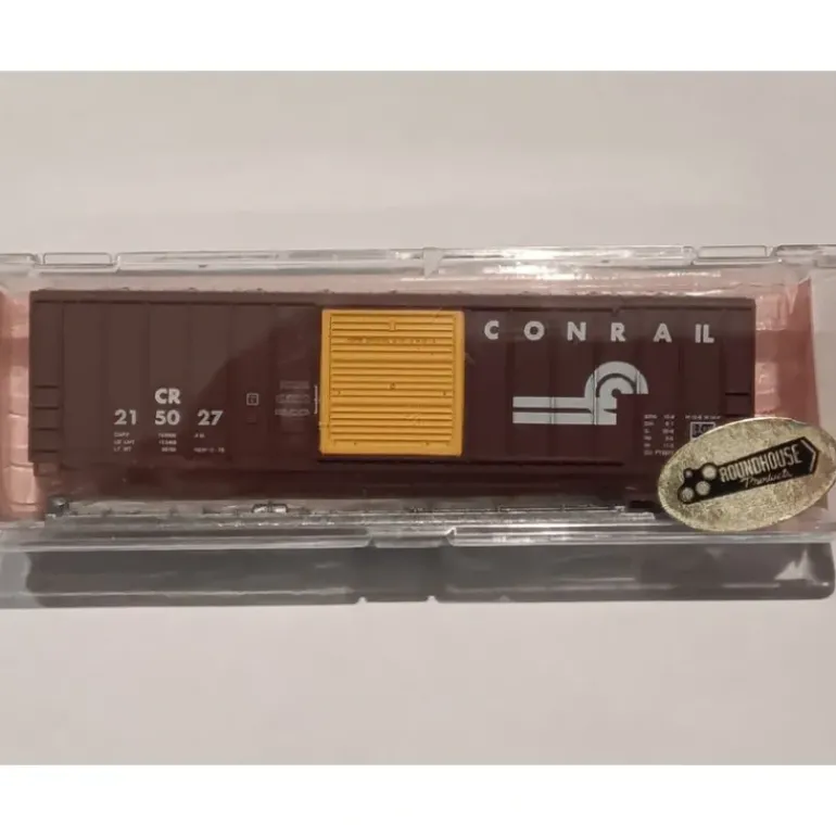 Here is a Roundhouse 8808 N Scale Conrail Box Car Kit #215027. Item comes disassembled with plastic construction.