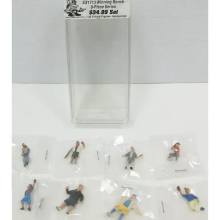 Here is a Sandlot Baseball EX1713 8-Piece Winning Bench Figures. Included are Eight metal O-Scale children figures, playing ball, which measure approximately up to 1 1/2 inches in height.