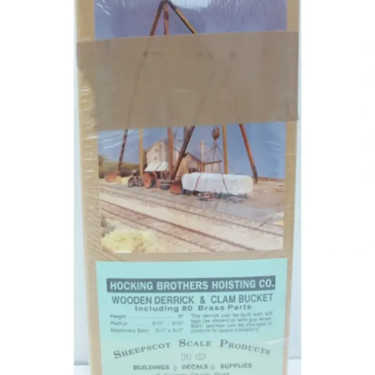 This is a Sheepscot Scale Products 1063 HO Wooden Derrick & Clam Bucket Building Kit.