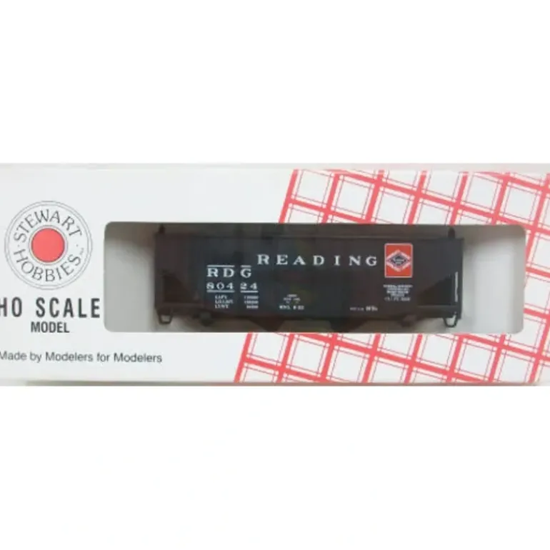 This is an Stewart 10129 HO Scale Reading 55 Ton Hopper Kit #80424.These easy-to-build HO Scale plastic models feature one-piece, prepainted and lettered bodies. Kits include trucks and weights. Coupler pockets accept Kadee(R) couplers.