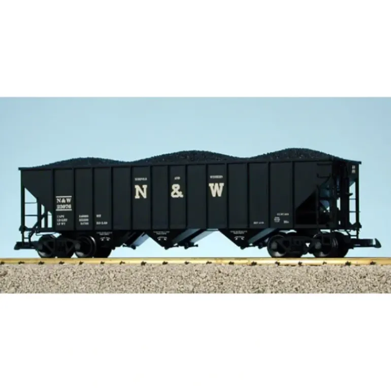 This is a USA Trains 14016 G Norfolk & Western 70-Ton 3-Bay Coal Hopper with Coal Load. Each hopper features opening bottom hatches, detailed brake system, coal load and metal wheels. Cars are Kadee coupler-compatible.