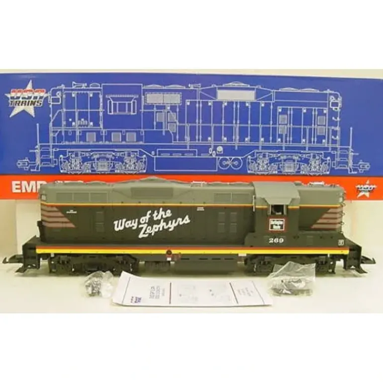 This is a USA Trains 22112 G Burlington GP-9 Diesel Locomotive. Award Winning Model, Dual Motors with Power Trac Drive System, Dual Operating Smoke Stacks, Detailed Cab Interior with Engineer, Operating Cab Door, Interior Lights, Metal Handrails, Red/Green Directional Marker Lights, and Approximate Length: 22.67, Width: 3.84 Height: 5.69.
