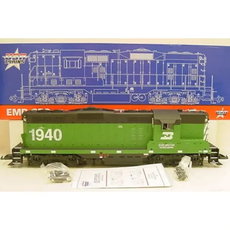 This is a USA Trains 22113 G Burlington Northern GP-9 Diesel Locomotive #1942. Award Winning Model, Dual Motors with Power Trac Drive System, Dual Operating Smoke Stacks, Detailed Cab Interior with Engineer, Operating Cab Door, Interior Lights, Metal Handrails, Red/Green Directional Marker Lights, and Approximate Length: 22.67, Width: 3.84 Height: 5.69.