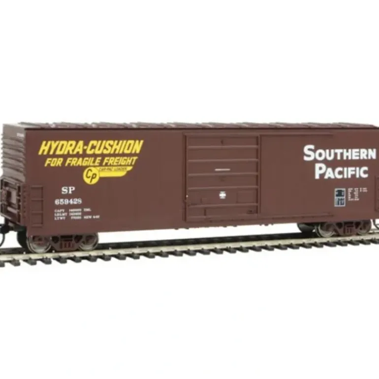 This is a Walthers 910-1917 HO Southern Pacific(TM) #659428 – 50′ Evans Smooth Side Boxcar. Limited edition – one time run of these roadnumbers, Retooled with thinner stirrups & added door gussets, In service early 1970s to present, Perfect for handling all types of general freight, Correct 33 turned-metal wheelsets, and Proto MAX(TM) metal knuckle couplers.