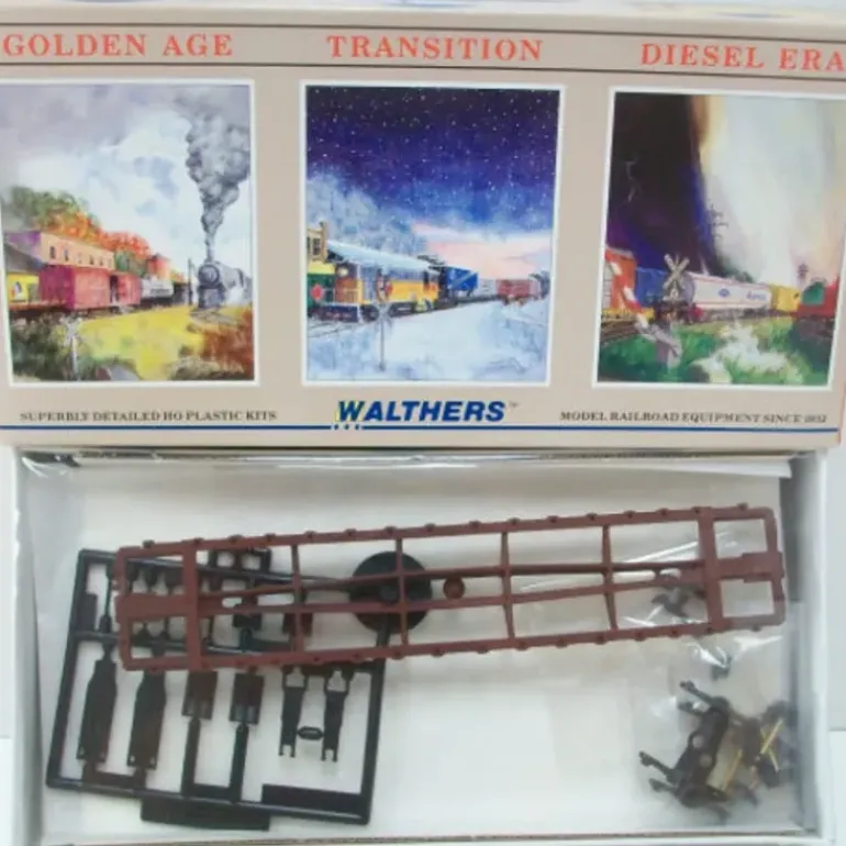 Here is a Walthers 932-3762 HO C&NW 54′ GSC Flatcar Kit. Features include plastic pieces for construction and instructions included.