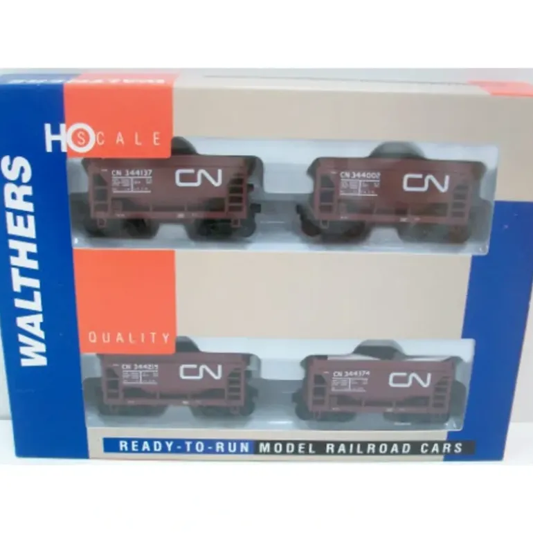 Here is a Walthers 932-4503 HO Scale Canadian National Taconite Ore Car 4-Pack. Features include fully assembled and ready for service, colorful, modern paint scheme and is complete with working knuckle couplers.