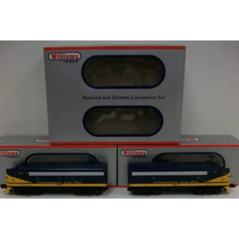 Here is a Chesapeake and Ohio AA diesel set that includes a powered and a non-powered dummy unit. The powered unit has dual motors and digital horn and bell sounds. Both engines feature detailed styrene bodies, working headlights, decorative horns, die-cast metal trucks, fuel tanks and pilots and realistic paint schemes.