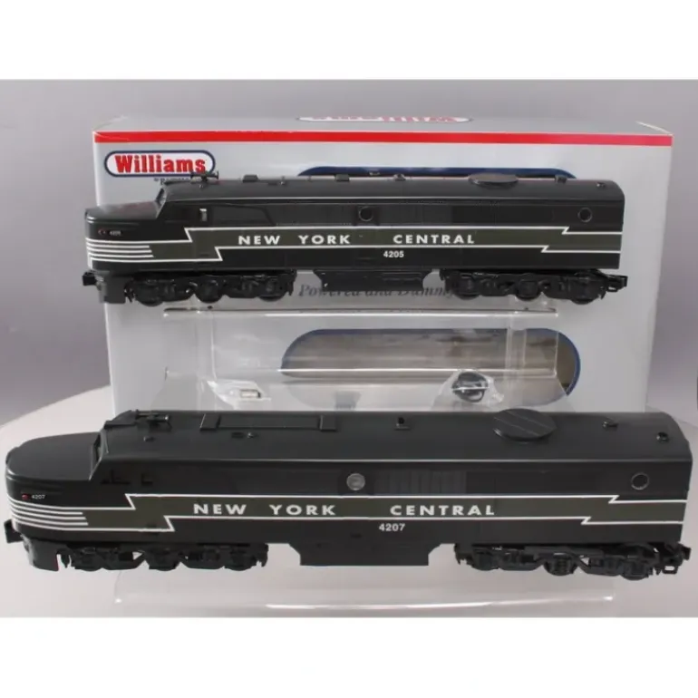 This is Bachmann 22613 O New York Central Alco PA1 A-A Set 3-Rail Diesel Locomotive. Its key features are: Navigates 0-31 curves, 6 wheel power trucks with traction tires, Powered by dual motors, Flywheel coasting action, All metal gears, Front headlight, Electronic 6-amp reverse board, True Blast II digital horn and bell, Durable ABS plastic shell, and Die-cast trucks, truck sides, pilots, and operating front couplers. Please see my pictures for additional features.