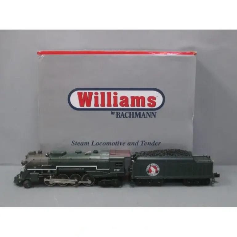 First introduced in 1927, the 2-8-4 Berkshire was designed and built by both Alco and Lima. The newly designed 4-wheel trailing truck allowed for a larger boiler that developed much more steam. Even though only 750 Berks were made, they were popular for longer than most other steamers built in the same era. The last Berkshire was built in 1949 by Lima. Features: traction tires powered by a powerful single motor, steel rimmed wheels, electronic 6-amp reverse board, True Blast II digital whistle and bell, die-cast operating coupler, smoke generator, Baldwin disc drive wheels, die-cast trucks, wire form handrails and grabrails.
