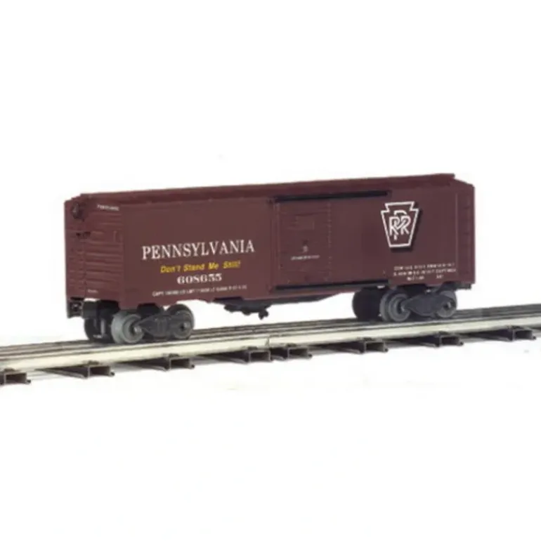 This car features an ABS plastic shell, die-cast trucks, metal wheels, operating couplers, prototypical graphics, metal floor, door guides, and a brake wheel.