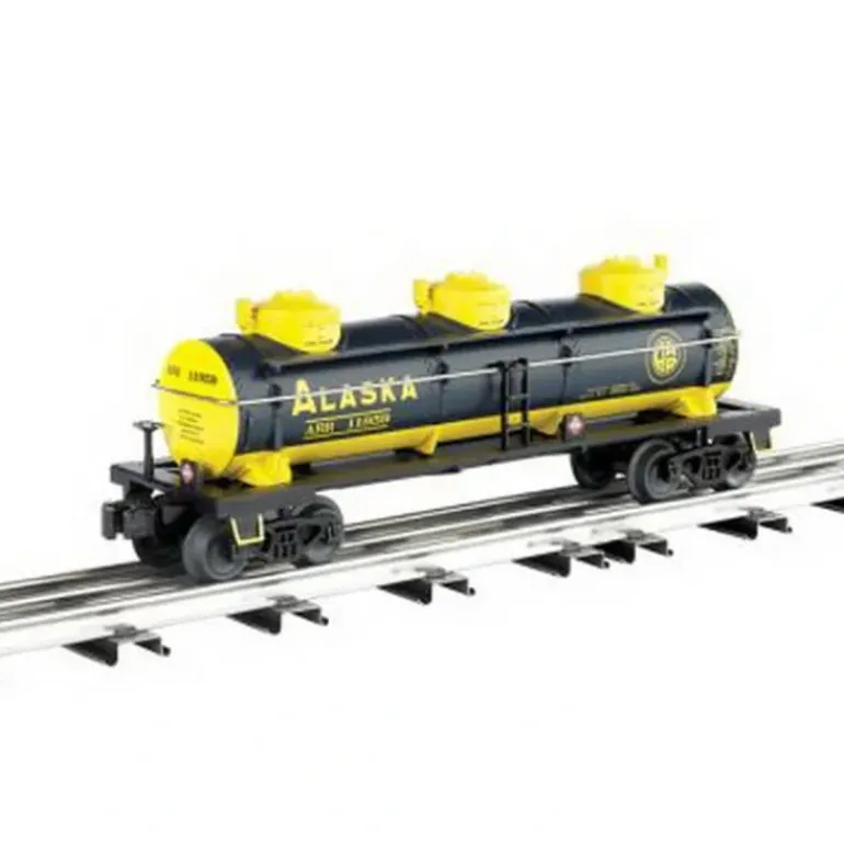 Three-Dome Tank Car Alaska. * navigates O-27 curves, * car length 10, height 3.5, * durable ABS plastic shell, * die-cast trucks, * metal wheels, * operating couplers, * prototypical graphics, * metal floor and brake wheel.