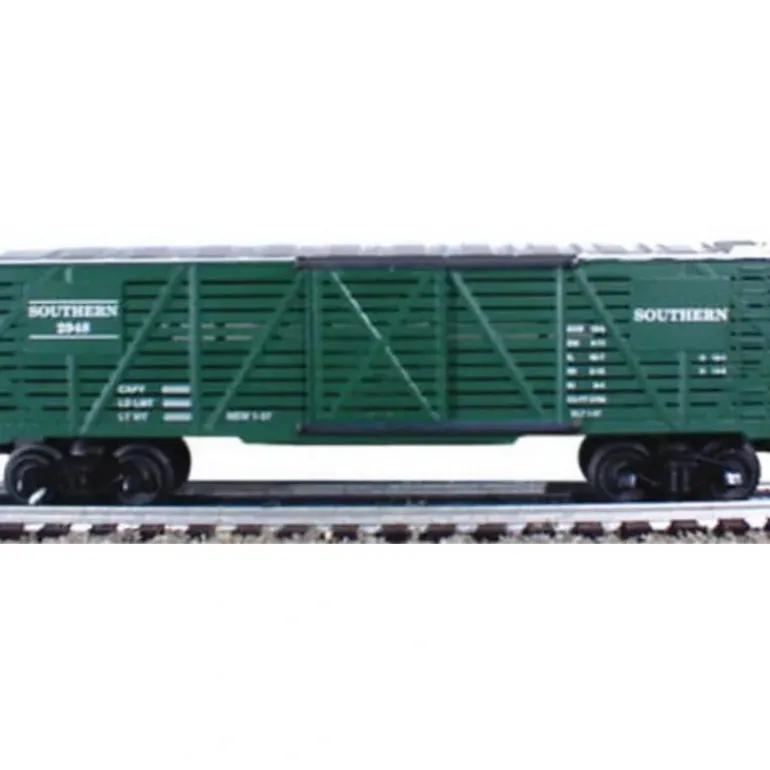Here is a Williams 47403 Southern Stock Car. This car navigates 027 curves. Features include: car length 10, height is 3.5, durable ABS plastic shell, die-cast trucks, metal wheels, operating couplers, metal floor, door guides, prototypical graphics, plus a brake wheel.