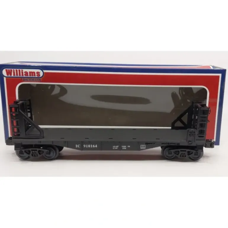 Here is a Williams 47506 Illinois Central O 40′ Flat Car w/ Bulheads. This car features plastic construction, die-cast metal trucks, knuckle couplers, metal wheels and axles.