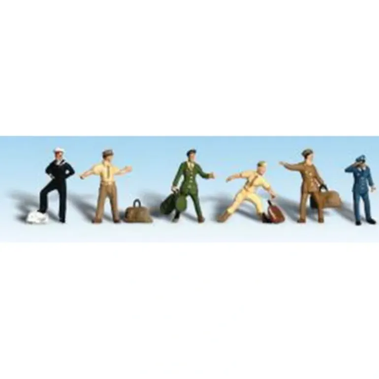 This is a Woodland Scenics A1892 HO Scenic Accents Uniformed Traveler Figures (Pack of 10).